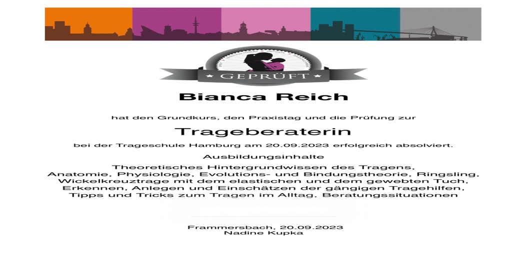 09/2023 geprüfte Trageberaterin der Trageschule Hamburg